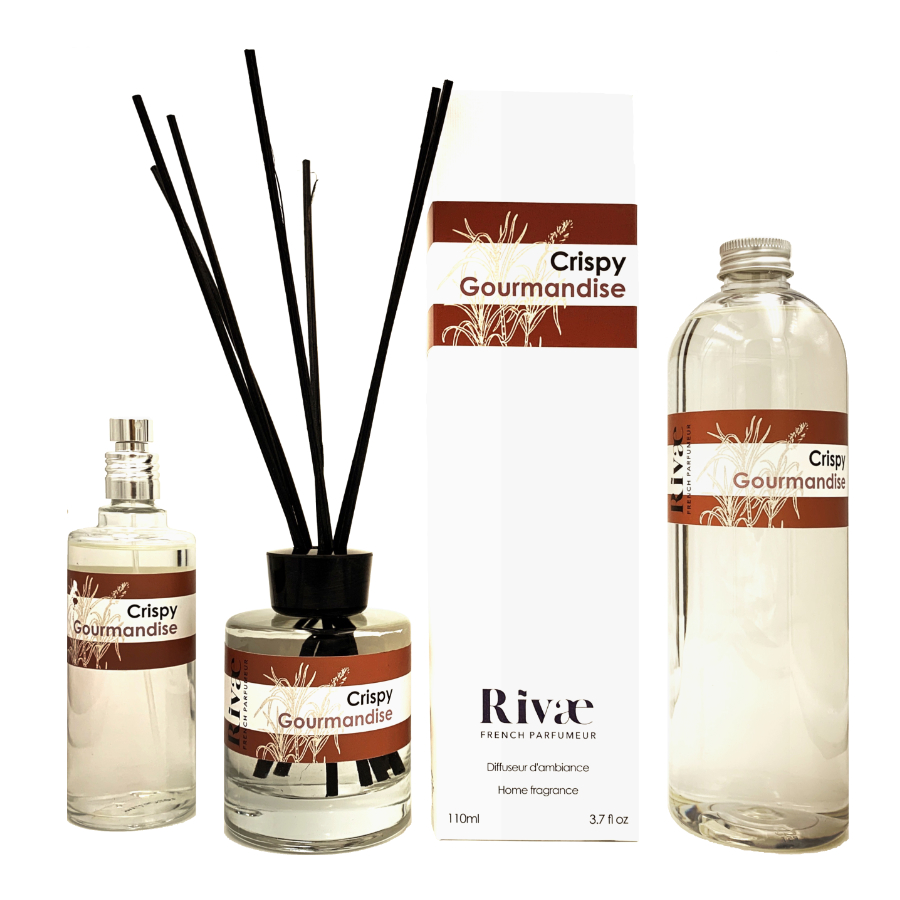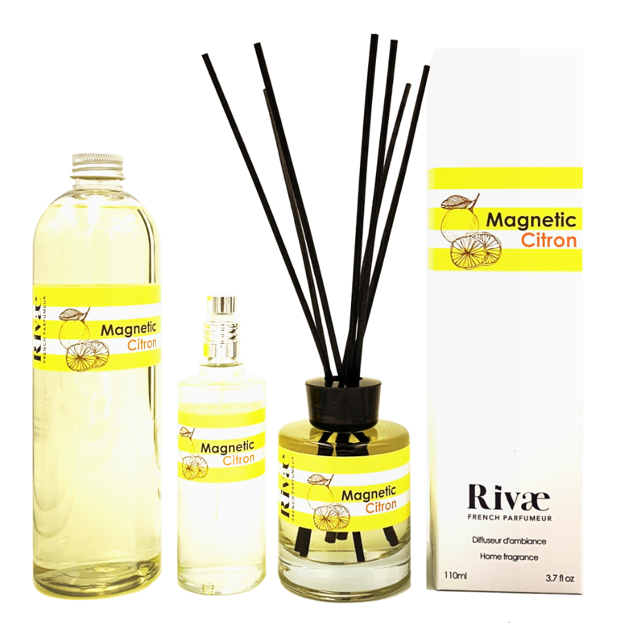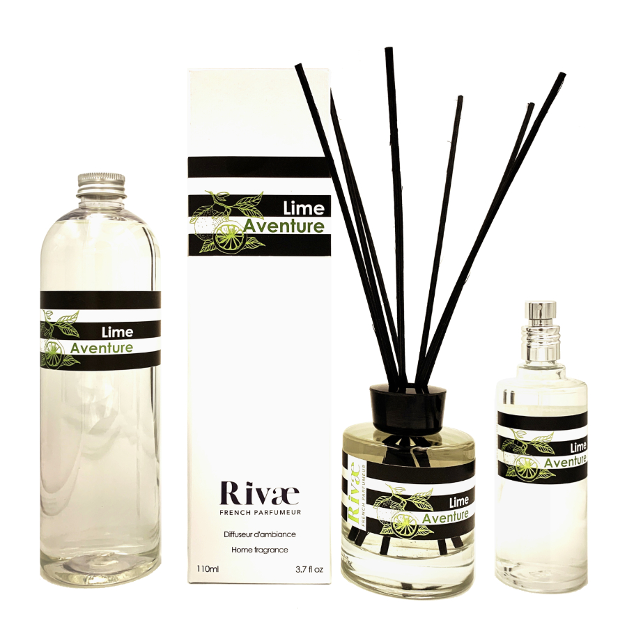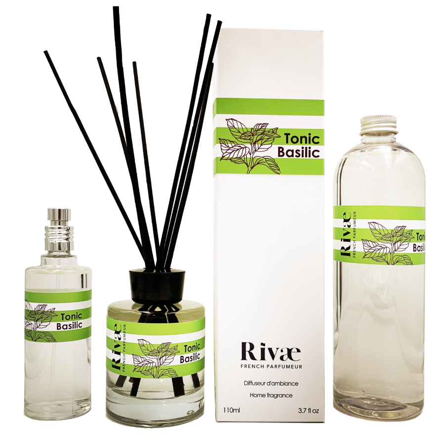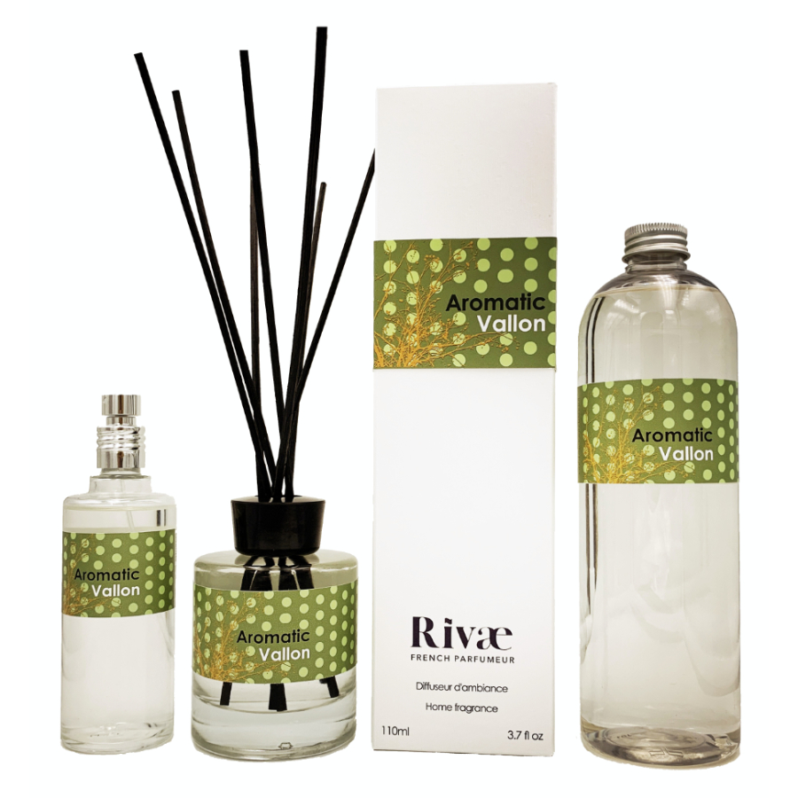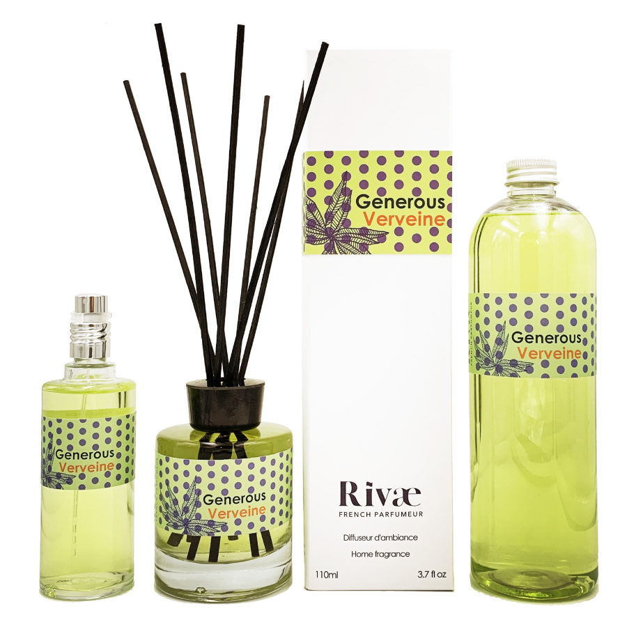 Tous nos parfums d’intérieur sont disponibles en vaporisateur 100ml (12€), en diffuseur à bâtonnets de rotin 110ml (22€), et en recharge 500ml (27€).